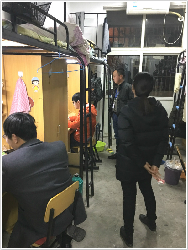 本网讯 2018年3月21日约20:00时,后勤管理处万明、新亚物业陶玲凤、楼管会学生一行五人前往文津校区三号学生公寓楼讯飞直通车培训学员宿舍进行了走访,深入了解学员入住以来的生活情况。