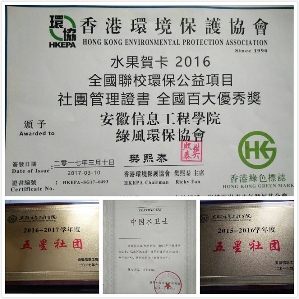 绿风环保协会诞生于2012年,以“推动大学生环保教育、倡导绿色文明,组织学习和普及环保知识,宣传环保理念,提高青年大学生的环保意识”为宗旨,以“立足校园,辐射社会,宣传环保知识,树立环保观念,绿色实践胜于言”为目标,以“约束自我、善待生灵、敬重生命、保护自然”为行为准则, 在近六年的发展中茁壮成长,取得了不俗的成绩,曾连续两年获得“校五星社团”、香港环境保护协会颁发的“全国联校环保公益项目百大优秀奖”、世界水日乐水行执委会颁发的“优秀团队”等荣誉称号。