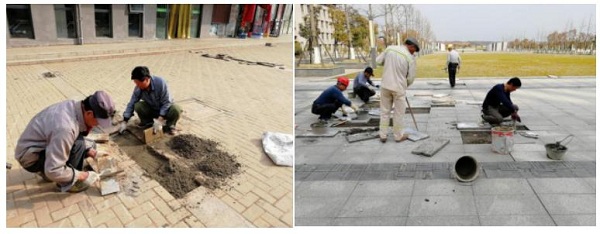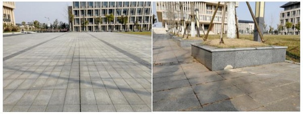 本网讯 2018年寒假极端天气相继而至,新芜校区户外坐凳、树池的大理石出现冻坏、空鼓、脱落等现象,食堂广场、图书馆文轴广场硬铺砖大面积松动,严重影响校园整体美观,也给师生通行带来诸多不便。