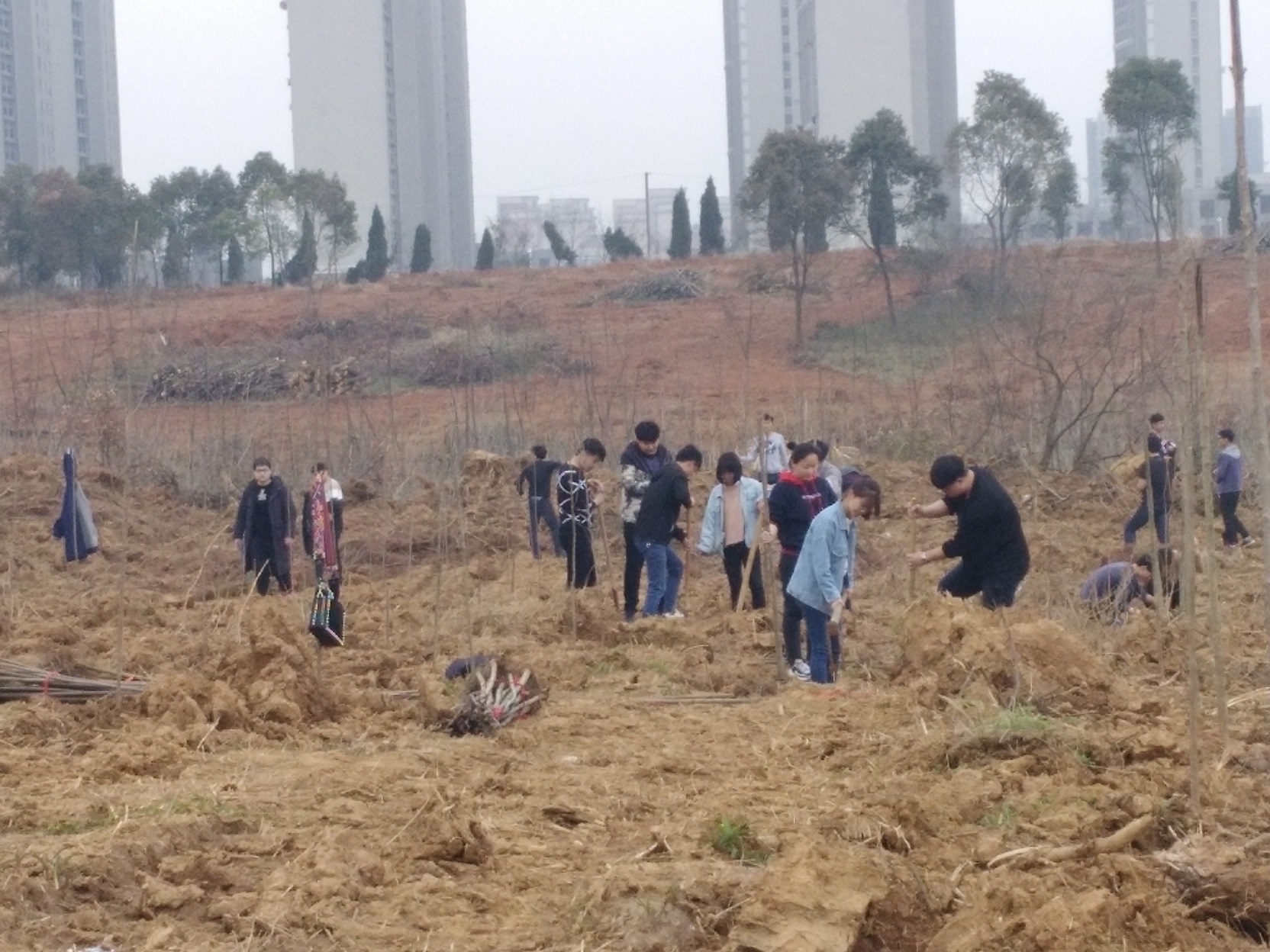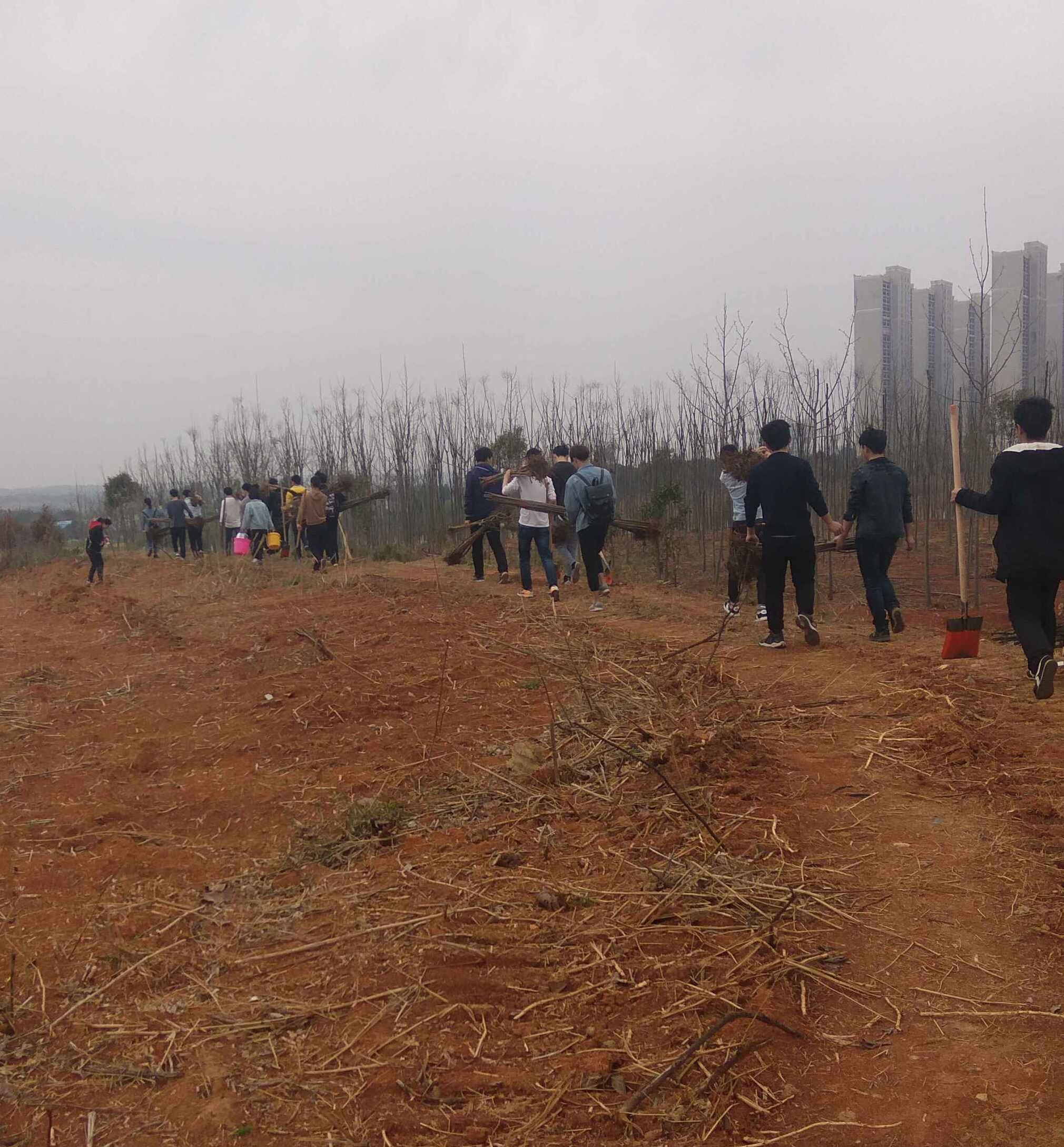 同学们全情参与,在班长与团支书的精心安排下,各项事宜都进行得非常顺利。同学们带上了事先准备好的铁锹、锄头、铁铲以及水桶等等植树工具,到达植树地点后,在当地林业局专业人员的指导示范下,找点、松土、挖坑、放苗、盖根、浇水。大家都展现出不同平日的热情,一个个树坑的挖成,一颗颗树苗的栽下,都是栽下了一份份绿色的希望;流下的每一滴汗,铲起的每一块土,都代表着每一个人的奉献和责任。经过大家的共同努力,在四个小时的时间里,大家顺利将计划的五百棵树苗成功栽下。