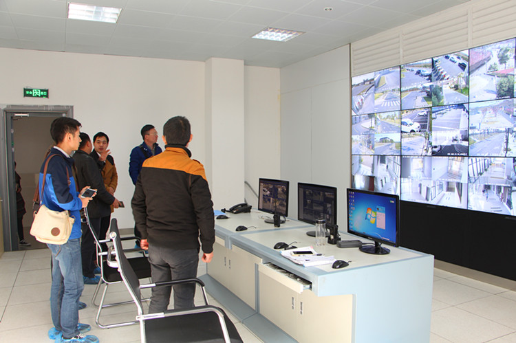 考察组成员首先参观了校园监控系统,讯飞智元项目经理黄敏向大家介绍平安校园系统建设。我院目前在各个通道、户外和室内大概装有1500个探头,实现了监控全覆盖,360度无死角实时监控采集图像,以确保师生等的安全和监控考场现状,该监控图像可存储一个月。此外我院正在计划推出人脸识别、车牌识别以及车辆雷达测速软件系统,后期将与外网链接,实现对重要事件的分析和报警,以确保全院师生和工作人员的安全。