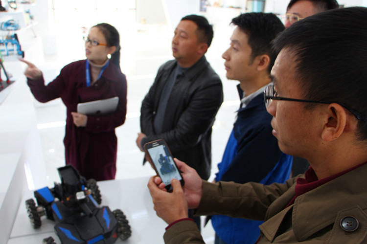 在A8楼双创中心展厅,教务处教师张艳琼介绍了学院展厅各智能化系统应用。一楼主要借助3D 模拟展示我院宣传片、各系部分中心以及讯飞展厅的概况。随后考察组一行逐个参观了讯飞展厅、历年来典型的获奖及专利作品展厅、各系部分中心和RoboMasters实验室等,深入了解了我院取得的丰硕成果和独特的管理模式。