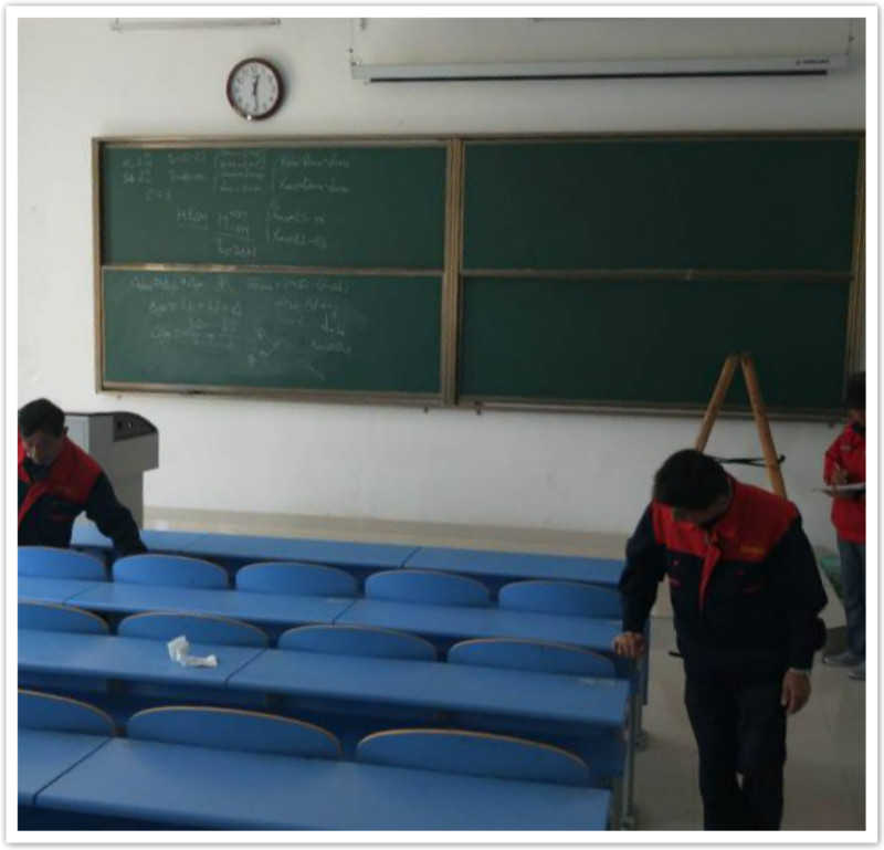 本网讯 清明节三天假日,维修部三位师傅对教学区200多间教室的课桌椅、开关、日光灯、窗帘、黑板的使用状况进行了问题排查、统计,并进行了集中维修。