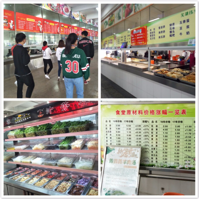 本网讯 为了解周边高校食堂餐饮服务情况,加强兄弟院校学生伙食管理委员会交流,4月份我院学生伙食管理陆续走访和联络了皖南医学院、安徽工程大学、安徽师范大学、芜湖机电学校及其学生伙食管理组织,沟通双方伙管会日常监督工作和各食堂菜品菜价信息。