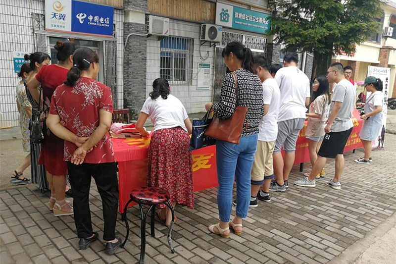 28日上午8点,实践队员们满怀激情,抵达活动地点。在当地村委会的帮助和队员的积极宣传下,活动很快吸引了大批群众,参与的群众认真阅读了宣传彩页,填写了“关爱两留”调查问卷,并在宣传横幅签下了自己的名字,表达对“两留”现象的关注和对我们活动的支持。与此同时,不少老人也来到了我们活动现场,他们眼神中流露的对子女回归的强烈期盼与思念令人动容,这更加坚定了我们此次活动的决心。