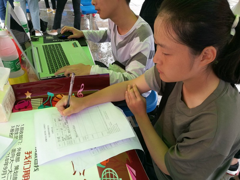 (图为新生正在填写报名表)