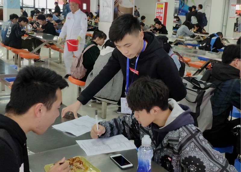 (图为伙管会学生正在向就餐同学做满意度问卷1)