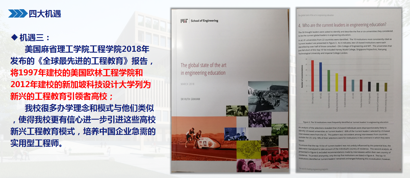 在学校发展的愿景里,“产业工程师、创业企业家的摇篮”这一表述,已经把学校发展的方向描绘得足够久远。“三阶段发展目标”中,长期目标要把学校打造成“国内一流、国际知名的民办应用研究型大学的标杆”,像一座高山,矗立在学校前行道路的正前方。