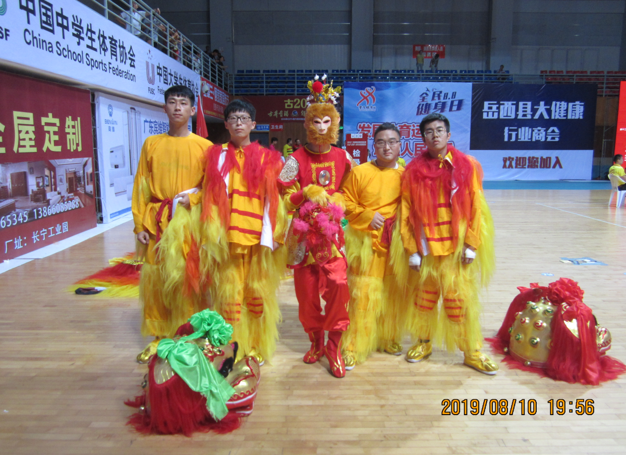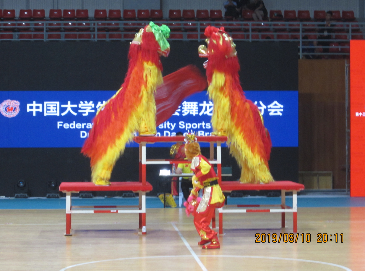 本网讯 8月8日,中华人民共和国第十二届大学生舞龙舞狮锦标赛在安庆市岳西县天悦湾体育馆隆重举行,来自18个省市,43所高校的866名运动员展开了激烈的角逐。最终我校龙狮队获得男子甲组北狮规定动作全国第5名,北狮自选动作全国第5名的好成绩,主教练曹春顺老师获得优秀教练员称号。