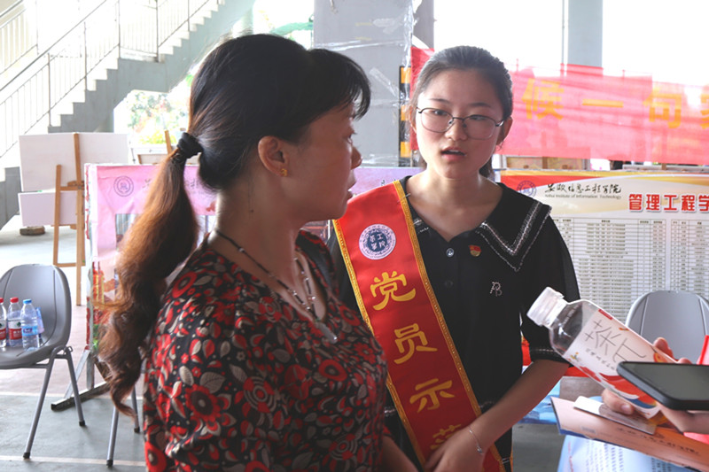 本网讯 为了做好管理工程学院2019级新生的迎新工作,引导广大党员在服务校园、服务师生中更好地发挥先锋模范作用,学院积极号召包括教职工在内的各党员组成党员示范岗,亮出身份、树立形象,于报到处分设"党员示范岗”,对新生报到进行积极引导。