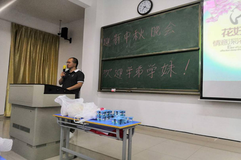 在市场营销、国际经济贸易专业新生晚会上,辅导员邵先龙首先表达了对大一新生中秋佳节的祝福,并且对开学以来两个专业在校表现作了总结。