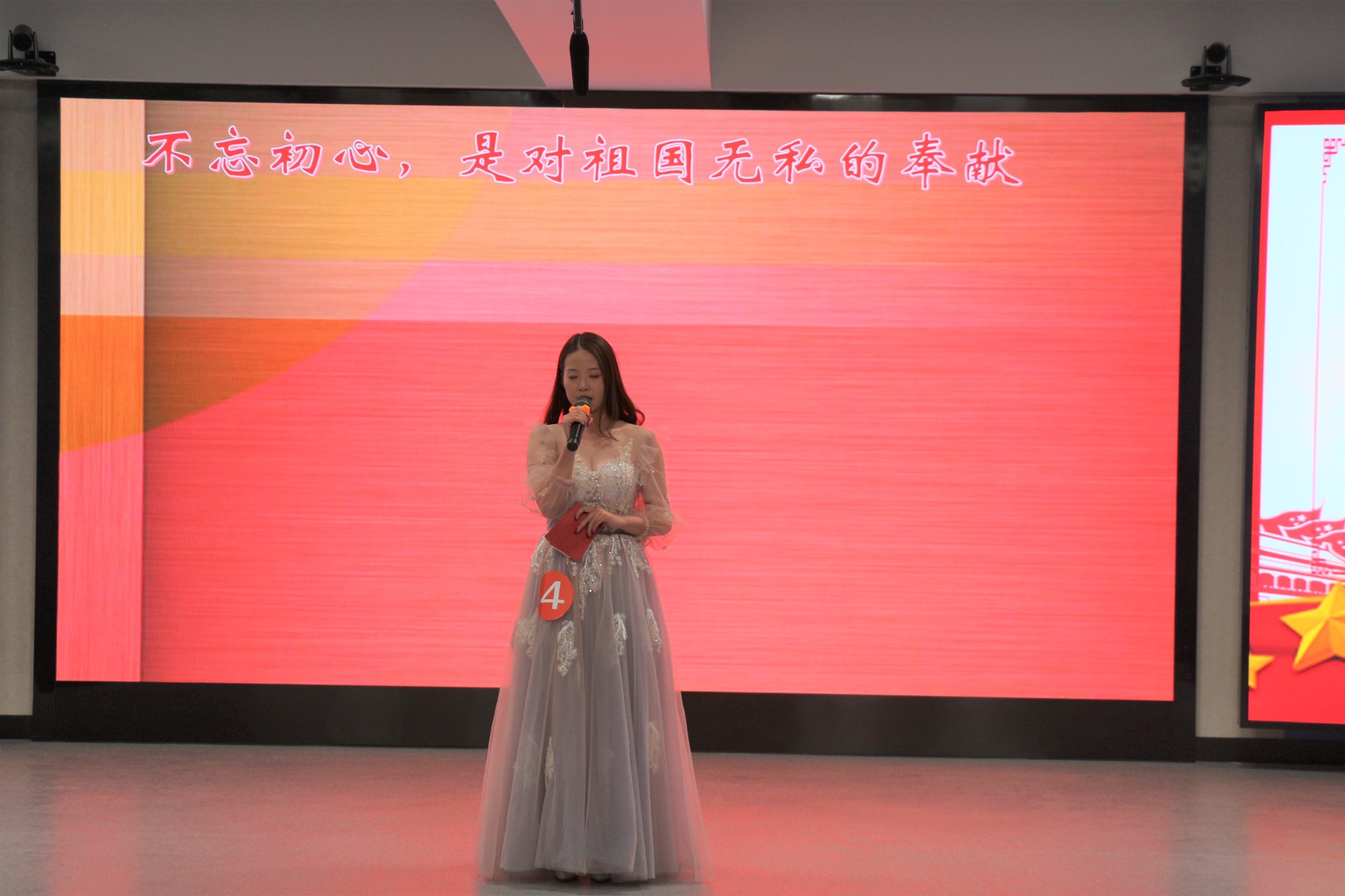 本届大赛在校园引起了广泛的参与度,300多名选手参加海选,决出25名选手进入复赛,最终在强强对话间,10名选手会师决赛。决赛共分为3个环节,即模拟主持、即兴主持、歌词朗诵。第一环节开始后,选手们轮流上台,他们模拟主持的类型各不相同,有新闻播报、电影推荐、人物传记等等。各位选手或成熟稳重、或幽默活泼、或激昂慷慨、或清韵流淌,总能给评委和观众带来阵阵惊喜。在第二环节中,各位选手分别现场抽取一个话题进行即兴主持。抽到移动支付话题的,开始侃侃而谈它的便利;抽到垃圾分类话题的,着重点出对于环境保护的重要性;抽到人工智能话题的,选手恰合时宜的与科大讯飞相联系,无一不显示出选手们过人的主持功底。最后的环节歌词朗诵,选手们都饱含深情地朗诵着《红旗飘飘》、《我和我的祖国》、《天路》等讴歌祖国母亲的作品,让我们既看出选手们的朗诵水平,更深深的感受到了他们的不忘初心,与浓浓的爱国之情。