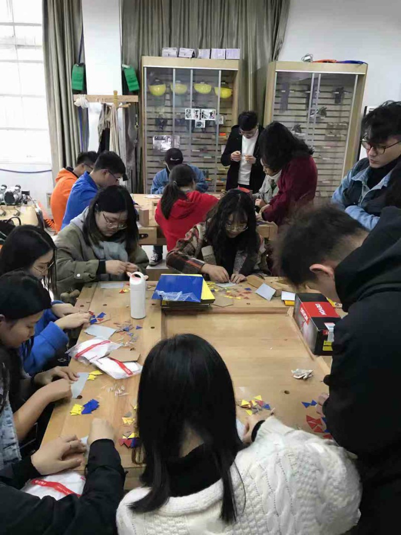 本网讯 11月25日上午9点半,艺术设计学院邀请同济大学设计创意学院客座教授,上海堤旁树木工俱乐部总经理、上海“吴淞工匠”称号的余韬工程师,在艺术设计学院东三103 木工坊,开展了题为“Color&Shape 空间木结构的实验性雕塑”的工坊活动。当天下午艺术设计学院产品教研室副主任钱琳,环境设计教研室教师苏乐、产品教研室教师张文昕、李任梅参加了工坊活动,我院20余名设计学子报名参加。讲座由实验中心副主任江鹏主持。