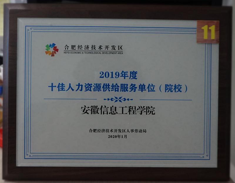 我校荣获国家级-合肥经济技术开区 “2019年度十佳人力资源供给服务高校”