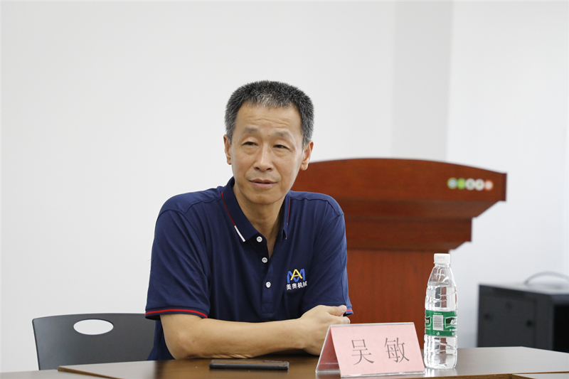 随后吴敏校长一行来到了芜湖美奥机械科技有限公司,走进一线生产车间,深入调研该企业的生产情况、生产规模、工艺流程,并与美奥机械总经理程浩、技术副总陈富强、生产部长蔡成勇等进行交流座谈。作为传统的制造企业,该公司有着强烈的产业升级和智能化转型的需求,与安信工“服务地方经济发展,推动产学研融合发展”的发展愿景不谋而合。吴敏认为,校企双方具有广阔的合作前景和发展空间,希望进一步深化合作,优势互补。