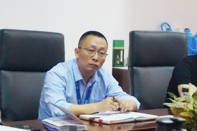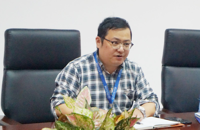 黄武勇向开发区交流团介绍了学校基本情况、人才培养定位及特色、学生实习、就业工作安排等情况。