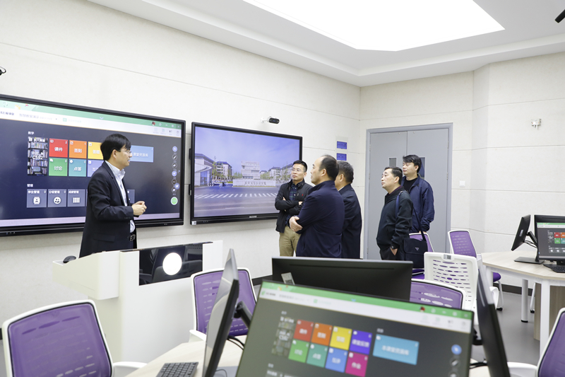 访问团首先来到A3智慧教室参观考察。程玉林向访问团详细介绍了学校智慧教室建设情况、使用场景及智慧校园建设规划等情况。