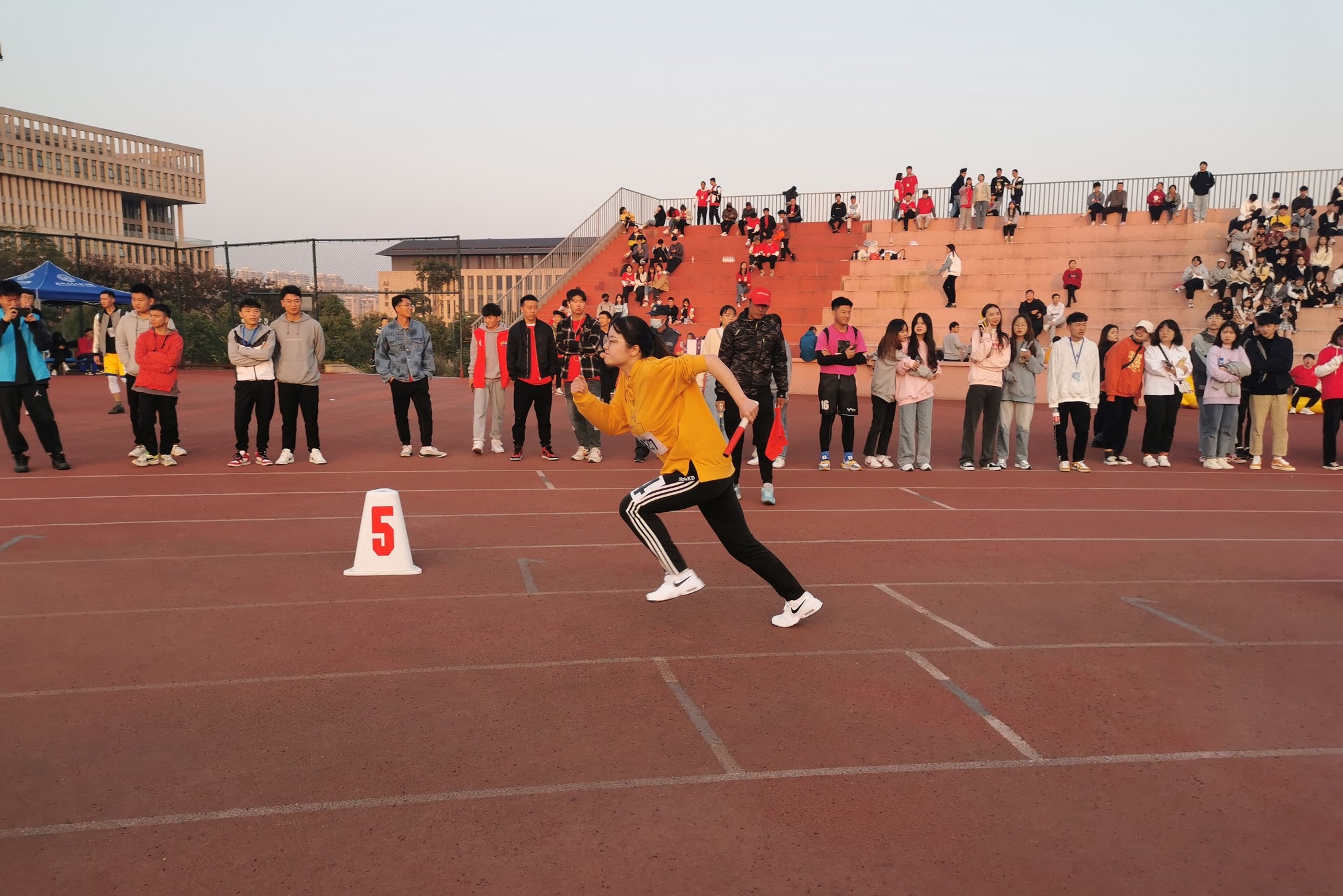 14日上午8点半,决赛正式打响。学院健儿坚持不懈,奋勇拼搏,最终,车辆2001班李文正荣获女子跳远第三名,材料2002班张梅娟获得女子1500米第三名,车辆1901班项锴同学获得男子三级跳第二名,机电1901班李星获得了男子三级跳第三名,材料1901班许东翔同学荣获男子200米第二名的好成绩。学院获得体育道德风尚奖、优秀组织奖。