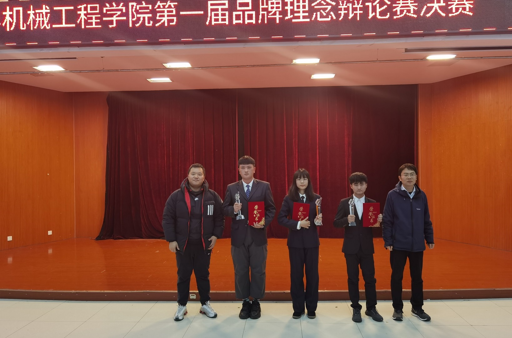 最后,柴阜桐作总结点评,他肯定了选手们的精彩辩论,希望通过此次辩论赛让学生们去深入理解“十二字方针”的内涵,并能够用此理念指导自己的专业发展与素质提升。通过本次比赛,同学们领略到了机械工程学院学子的语言组织和逻辑思维能力,学会了团队合作精神的重要性。比赛结束后,各评委给获奖团队颁奖,合影留念。本次新生辩论赛在同学们热烈的掌声中圆满地落下帷幕。