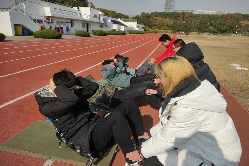 尽管是在凛冽冬日,但队员们每一个成员都不畏严寒,准时到达操场,全体队员精神饱满、热情高涨,团结、友爱、互助,严整有序,积极参与各项活动,通过游戏娱乐的形式对体力、脑力和团体意识上进行训练。此次活动的训练项目有仰卧起坐、两人三足、对内接力跑、跳远等项目。从对内接力跑和两人三足活动中可以看出队员之间的团队配合意识和互帮互助的精神。整个过程组织严密,队员们整齐有序。活动最后,指导老师王德鸣对本次活动进行了分析与总结。