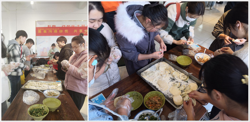 (图为教职工包饺子活动现场)
