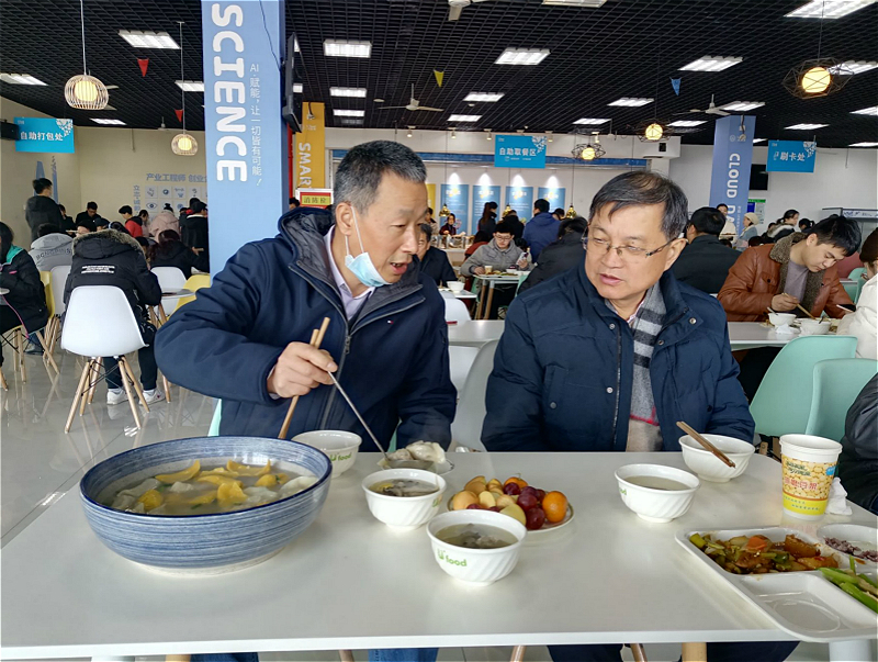 (校领导在品尝自己包的水饺)