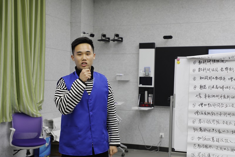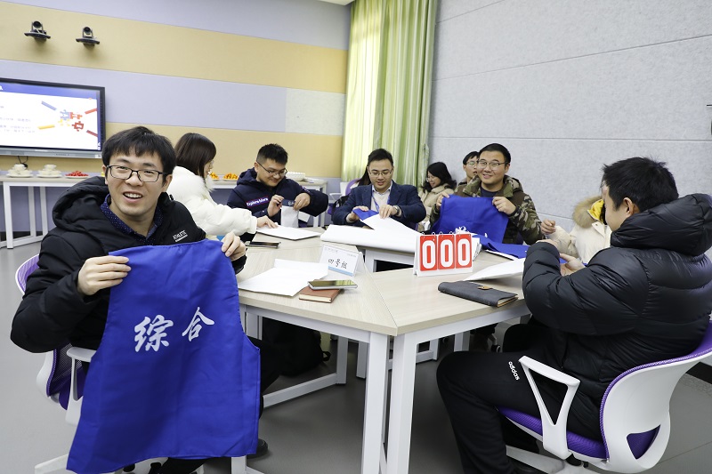 活动开场,主持人以游戏的形式将教职工随机分为四组。随后进入“头脑风暴”和“方案研讨”环节,以小组讨论的形式针对学校教科研管理、学生管理、行政管理和后勤管理保障四方面提出问题并研讨解决方案,由各组代表进行阐述。在“头脑风暴”环节中陈列观点最多的四号组获得了“吐槽大咖奖”、“方案研讨”环节中获现场投票数最多的二号组获得了“最佳小组奖”。