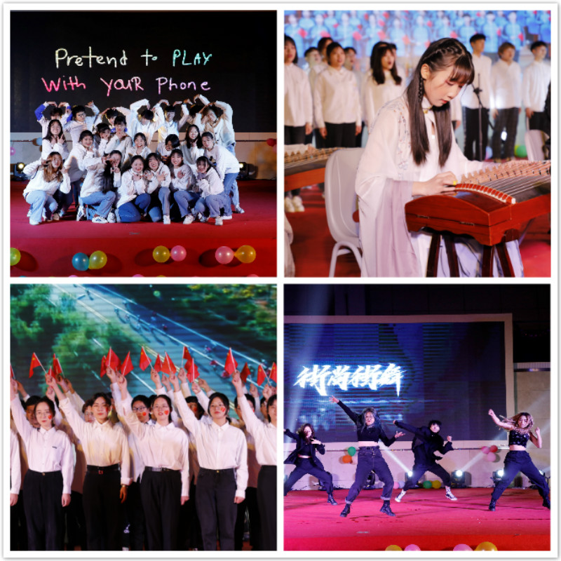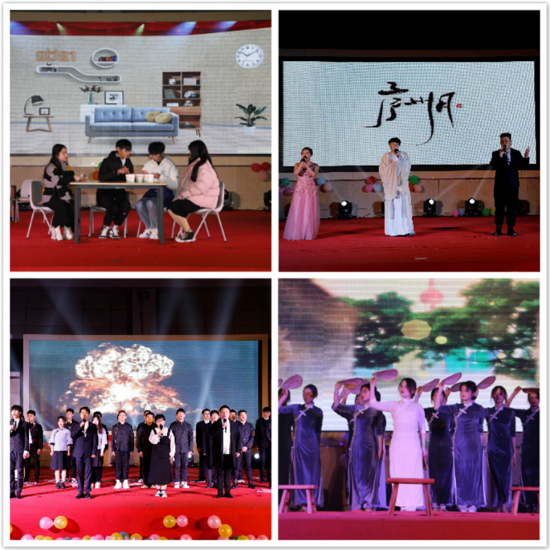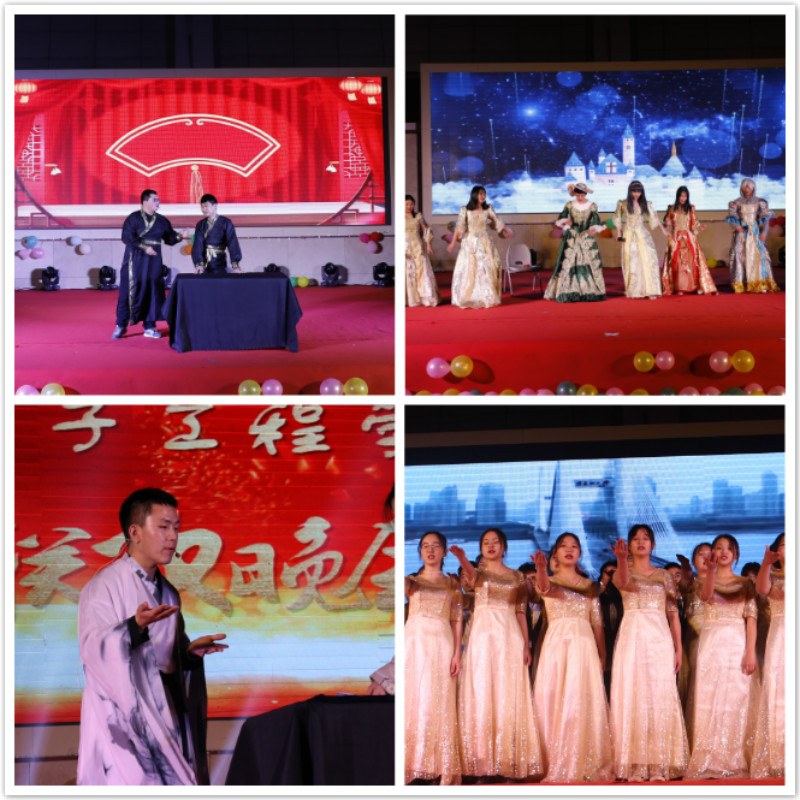 整场晚会节目丰富,内容新颖,电气与电子工程学院领导、师生同台演绎,精彩不断。晚会以一段激情四射的舞蹈《相约电气、一起跳舞》拉开序幕;《光辉岁月》乐队表演燃爆全场;歌曲串烧《青春律动》《释放自己》婉转动听;《urban dance》气场十足;《我的祖国》乐器表演旋律动人、大合唱气势磅礴;2020级辅导员演唱的歌曲串烧直击人心;神秘的魔术《三仙归洞》让全体观众体验了一场视觉盛宴;《灰姑娘后传》童话剧让人赞不绝口;《我家亳州》相声另观众拍手叫好;《等你回家》小品歌颂伟大的抗疫精神;纪念一二九运动的情景剧《少年行》给观众带来巨大的心灵震撼;《晨光曲》舞蹈让人梦回江南;晚会在合唱团《不忘初心》的歌声中结束。