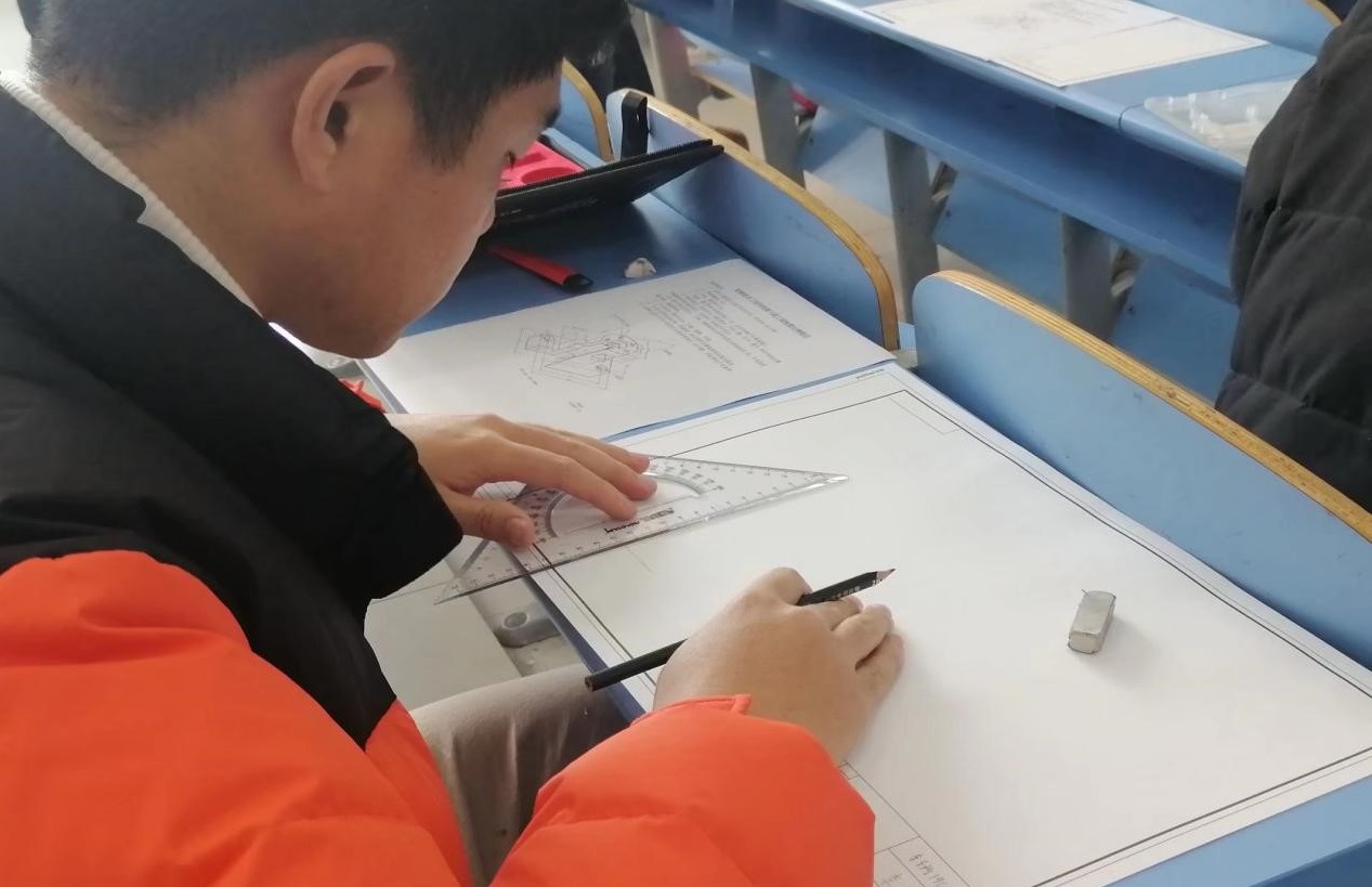 本网讯 为进一步提高大学生零件图的表达能力,巩固机械制图知识,使参赛选手提高学习相关知识与技能的热情,提高创新设计能力,适应行业、岗位发展需求。12月16日下午,在新芜校区A1教学楼多个教室举办学校第六届机械工程制图比赛。机械工程学院王彻老师在现场进行巡视与指导。
