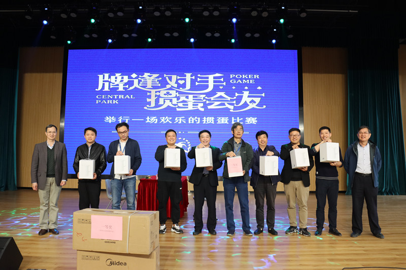 本网讯 为丰富教职工的业余文化生活,愉悦身心健康,促进相互间交流,以饱满的热情迎接合格评估各项工作,4月28日下午,由校工会主办,电气与电子工程学院承办的“庆五一”掼蛋王争霸赛在A32新食堂大礼堂举行。校工会主席宋小秋主持,校长吴敏致辞。