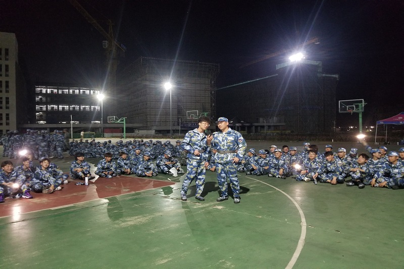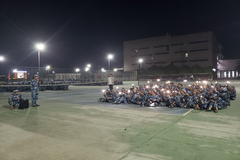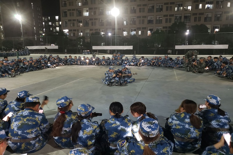 夜空下,运动场闪烁的“星光”吸引了各连队的注意,原来是学生们纷纷打开了手机的闪光灯,宛若繁星在空中闪烁。一曲街舞与现代舞的融合,充满朝气与青春的节奏,率先炒热了现场气氛,伴随着各营阵的歌声,时而高昂,时而悠扬,缓解了我们训练一天的疲劳,令人陶醉。