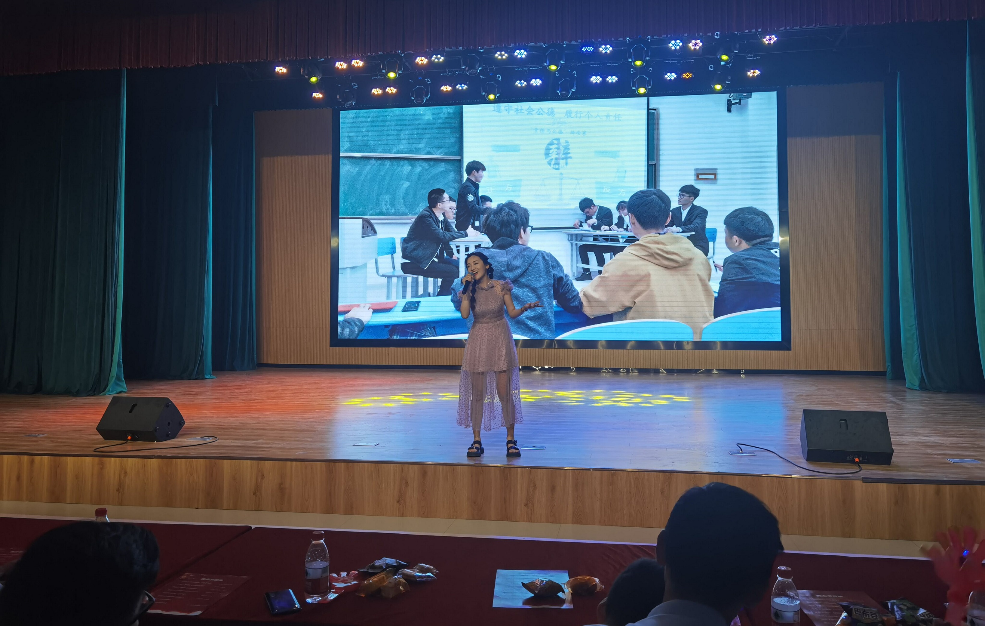 “祝愿同学们人生有信仰,肩上有担当。”“祝愿同学们心中有阳光,脚下有力量!”视频中播放着2021届毕业生辅导员们为毕业生们录制的祝福视频,祝福毕业生们前程似锦,不负韶华。他们用一首歌的时间将不舍与祝福唱与学生听,现场不少同学忆起四年温暖师生情,眼里闪动着泪花。