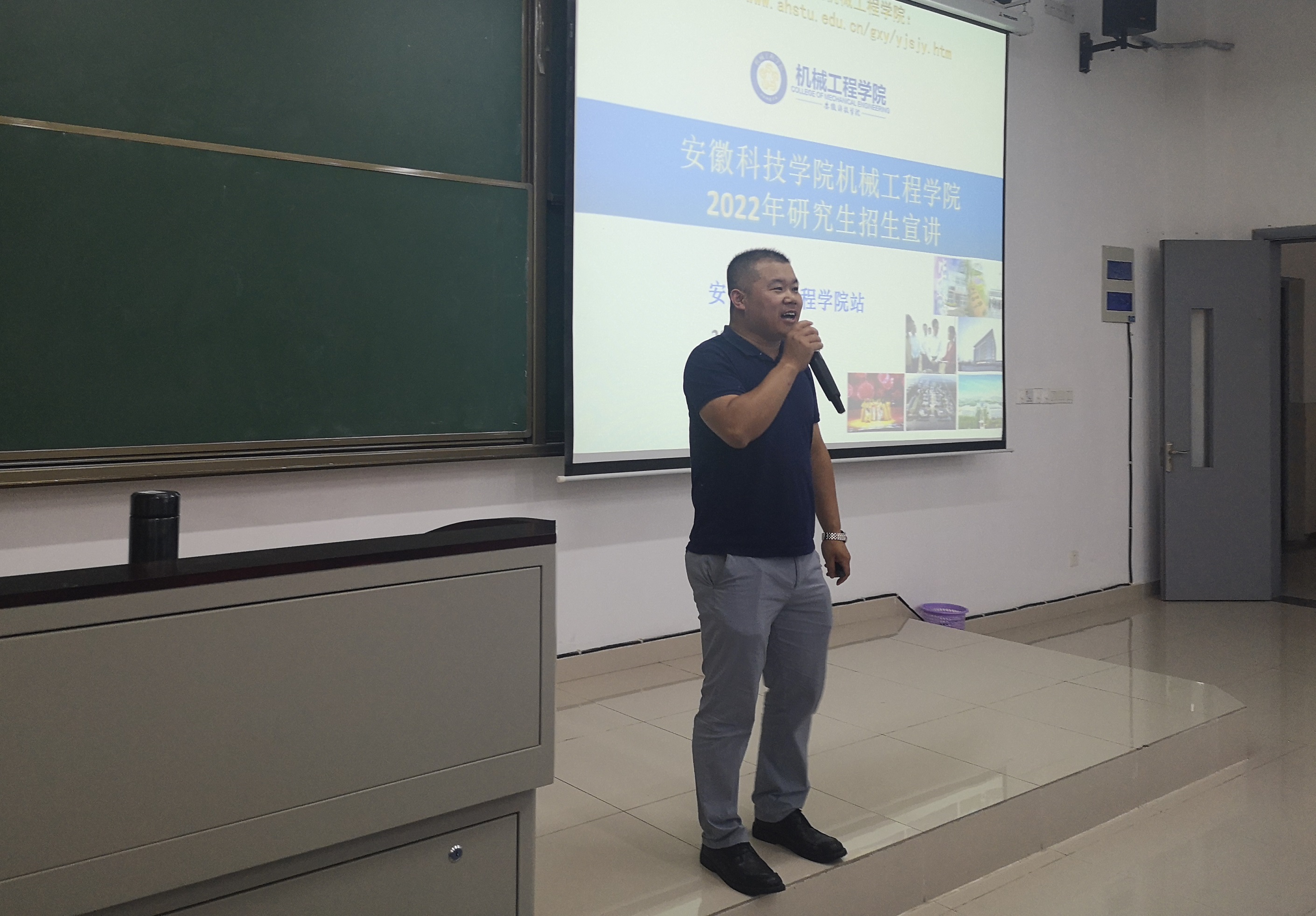 安徽理工大学机械工程学院张东速教授、姜阔胜博士,安徽科技学院机械工程学院副院长乔印虎、研究生秘书郭纯先后向同学们介绍了招考学院的概况、导师情况、研究生培养平台支撑条件、联合培养基地等。并对2022年学校研究生招生领域、报考条件、资助政策等内容进行了详细解读。同时,对学生提出的问题给予了耐心、细致的回答,鼓励同学们从自身实际出发,积极报考研究生,进一步深造,选择适合自己的院校专业,努力将自己塑造成优秀科研人才。