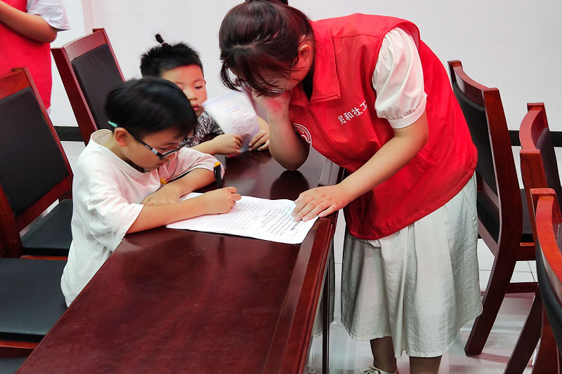 8月10日实践团在亳州蒙城少数民族聚居的回民村社区开展关爱留守儿童活动,关注回族留守儿童心理健康,助力留守儿童学习,实践团与留守儿童亲切交谈,鼓励留守儿童努力学习、健康成长、早日成才。