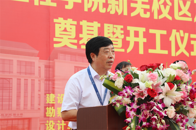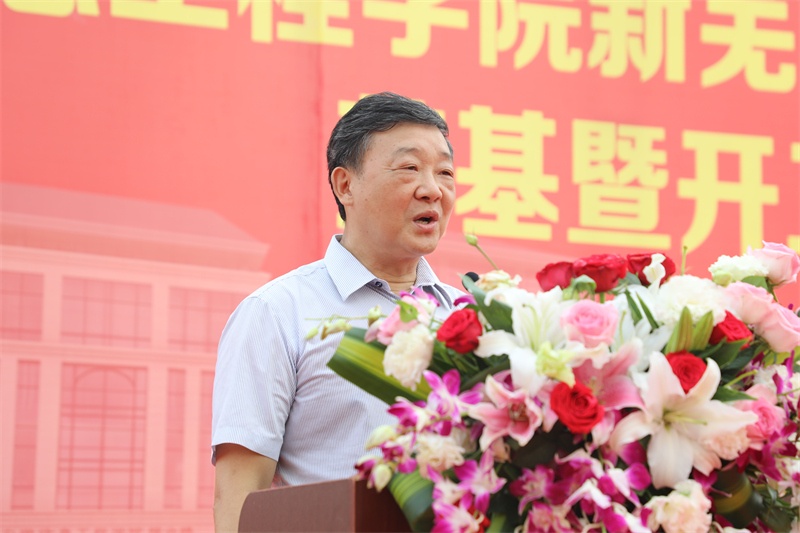 随后吴敏发表了热情洋溢的讲话。他表示:“安徽信息工程学院扩建工程是芜湖市政府确定的重点建设工程项目。自2020年4月23日开工以来,历经一年半,目前已经顺利完成了四期、五期共计12.4万平米的工程建设。此次开工的A9综合楼建设项目属于六期工程,还包括A38训练中心,总建筑面积3.5万平方米。六期工程完成后,学校建筑总面积将达到36余万平方米。届时学校的教育教学资源更加丰富、办学条件更加完善、功能更加齐全、环境更加优美,已初步形成集教学、科研、工作、生活、休闲于一体的、完整的、先进的、智慧的大学校园,成为湾沚区最亮丽的名片”。吴敏强调:“希望参建单位和监理单位,要严格技术标准,精心组织、规范管理、文明施工,确保工程质量、工程进度和施工安全,争创省级示范工程,使A9综合楼、A38训练中心成为学校放心、师生满意的工程。”