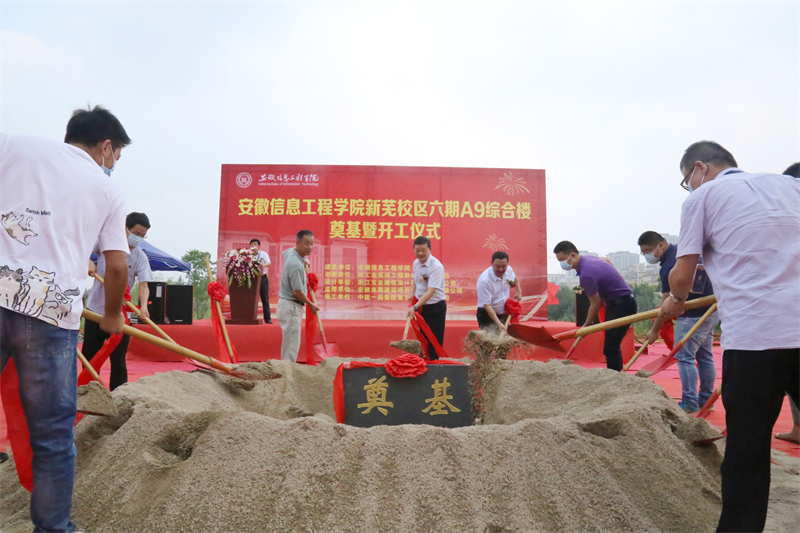伴随着吴德海宣布正式开工,现场礼炮齐鸣。在一片祥和喜庆的氛围下,大家同擎金锹,扬土培基,宣告着安徽信息工程学院A9综合楼项目正式起航。