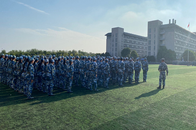 本网讯 烈日炎炎,军号嘹亮。至9月10日,我校2021级3000余名参训新生在驻芜空军某部队全体教官的带领下已进入军训第五天。军训团40余名教官军政素质过硬,言传身教,把部队良好的作风,严明的纪律带给新生,锤炼坚强意志,增强团结意识。