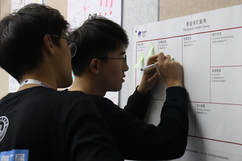从早晨8点到晚上10点,智慧教室里的讨论声从未间断,每只队伍保持着创业的激情,大家群策群力,倾情投入,希望在最后的展示环节得到评委们的认可!为自己而战,为团队而战!