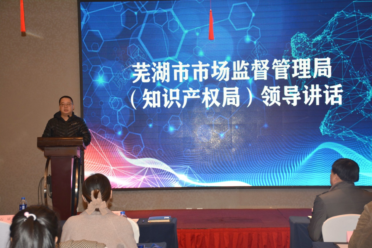 简短热烈的揭牌仪式后,芜湖市市场监督管理局(知识产权局)党委委员、总经济师钟敏讲话:芜湖市知识产权保护协会是政府联系企事业单位知识产权工作的重要渠道和纽带、是芜湖市知识产权界交流合作的重要平台。芜湖市知识产权保护协会要围绕知识产权保护这个重要任务,聚焦更多会员,更好地发挥沟通协调、技术支持、信息服务等功能,维护企事业单位的合法利益,促进经济健康发展。