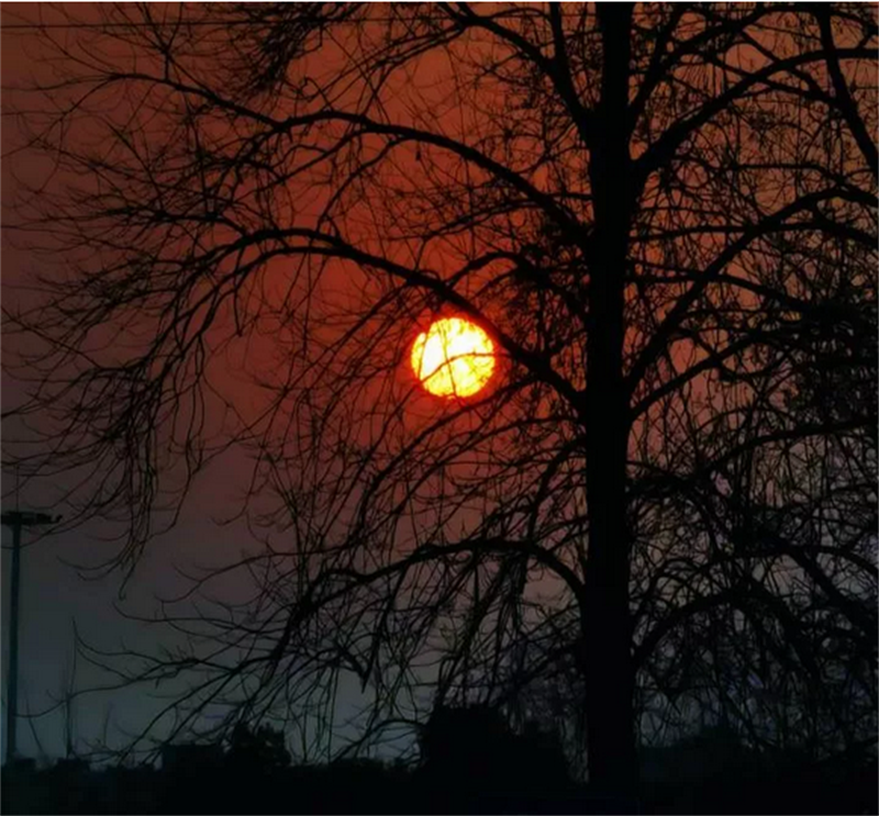 落日随夜色迫近而鲜红