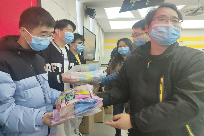陈振对同学们勤奋复习的状态也给予了肯定和赞扬,激励大家不惧困难、放手一搏,充分利用好最后的冲刺时间,以优异的成绩实现自己的理想!同时,提醒考研学子疫情期间要做好防护措施。最后,领导老师们代表学院将精心准备的慰问“加油包”发放到每一位考研学子的手中,让学生真切感受到电气学院大家庭的温暖。