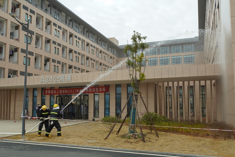 本网讯 为认真贯彻落实《中华人民共和国消防法》、公安部《机关、团体、企业、事业单位消防安全管理规定》以及《高等学校消防安全管理规定》,加强学校消防安全管理工作,进一步强化师生员工消防安全意识,增强防火自救能力,杜绝重大特大火灾事故的发生,为学校师生创造一个良好的安全环境。学校根据“预防为主,防消结合”的消防工作方针,结合“119全国消防安全日”宣传活动,12月28日下午,保卫处组织在A34宿舍楼开展消防疏散逃生演练。A34全体学生参加演练,2021级新生辅导员,物业、商超、食堂工作人员现场观摩。