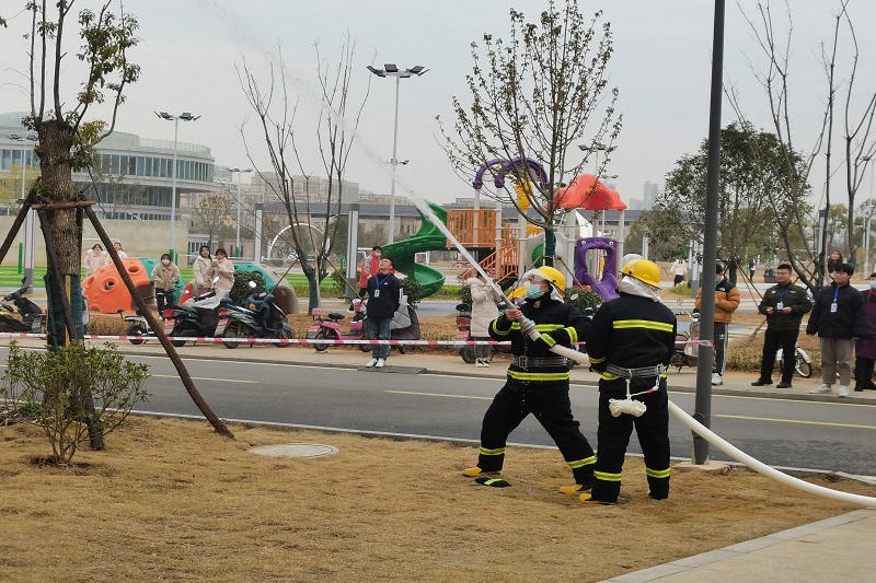 本着“以人为本,先人后物”的处事原则,医务救援组对楼内伤员进行模拟营救;随后,义务消防员携带消防器材、铺设水带、连接消火栓开展火场模拟扑救工作,顺利控制火势蔓延。