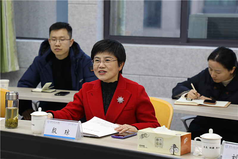 殷琼一行实地参观调研了学校双创中心展厅、工业级3D打印实验室、RM训练场、柔性智能制造生产线及智慧教室,听取了吴敏对于学校改革创新亮点和育人成果实效的介绍,并高度认可和赞赏学校近年来的成绩。随后双方展开座谈交流。