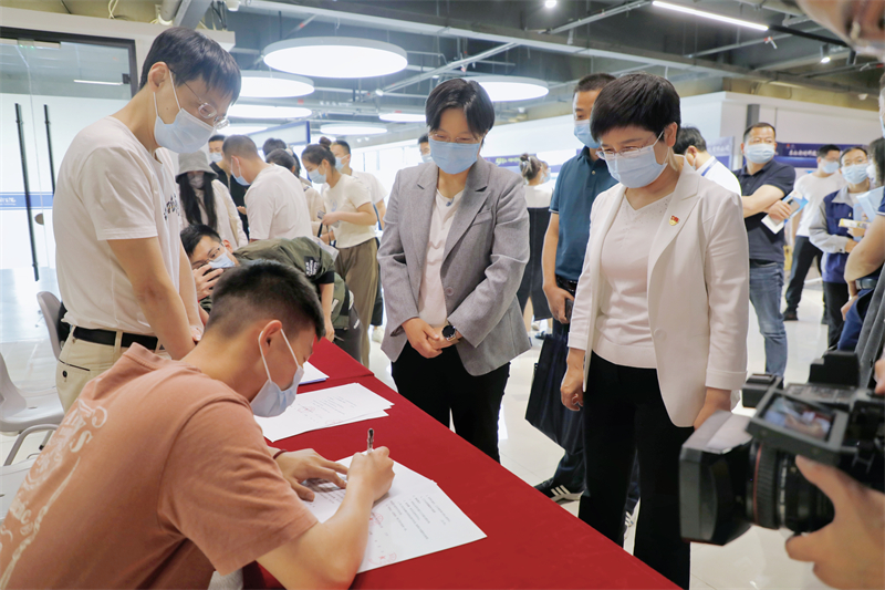 宣讲结束后,28家湾沚区产业龙头企业现场招聘,在殷琼等到场嘉宾的见证下,企业与意向毕业生现场举行了签约仪式。