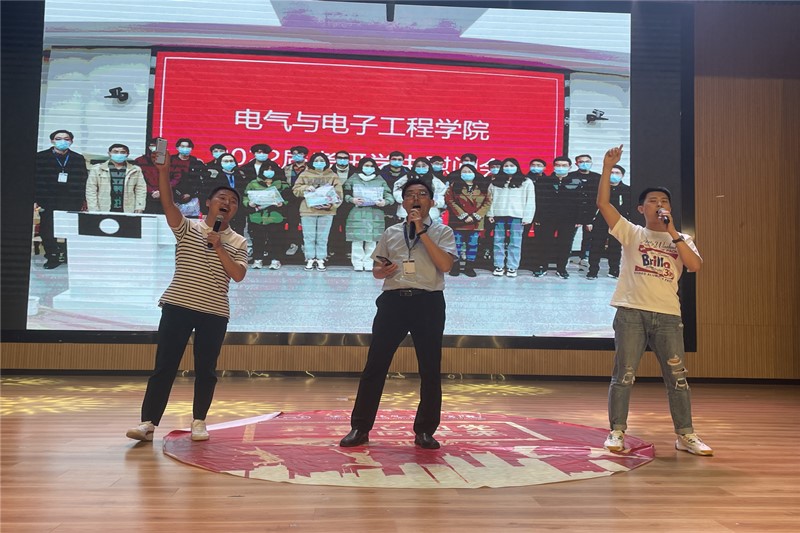 本网讯 生活“音”爱而乐,“音”爱而美!为落实2022届毕业生离校主题教育活动,丰富学校文化,增强毕业生爱校、荣校、强校的情感,营造积极向上、欢快愉悦的校园氛围。电气与电子工程学院于6月1日在A32大学生活动中心举办“青春心向党,一起向未来”2022届毕业生青春歌会活动,电气与电子工程学院党总支书记、副院长陈振,学工秘书曹栋,团总支书记吴猛,毕业班辅导员许秋实、鲁孟、程聪,以及各年级辅导员和毕业学子参加了本次毕业青春歌会。