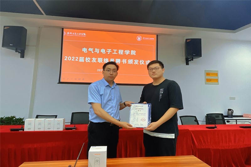 会议伊始,陈振宣读了《安徽信息工程学院关于聘任2022届校友联络员的通知》,15名毕业生经过推荐遴选,获聘为2022届校友联络员。接着陈振为各位校友联络员颁发了聘书。