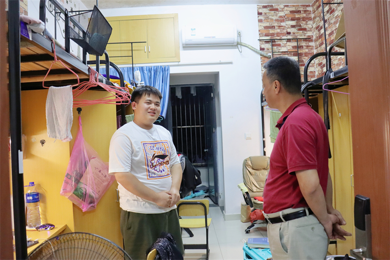 “工作找好了吗?”“签了哪个单位?”“老家是哪儿的?”对学校还有什么建议?”每到一间宿舍,校领导都仔细询问毕业生的升学就业情况、生活近况、离校安排以及未来规划等情况。