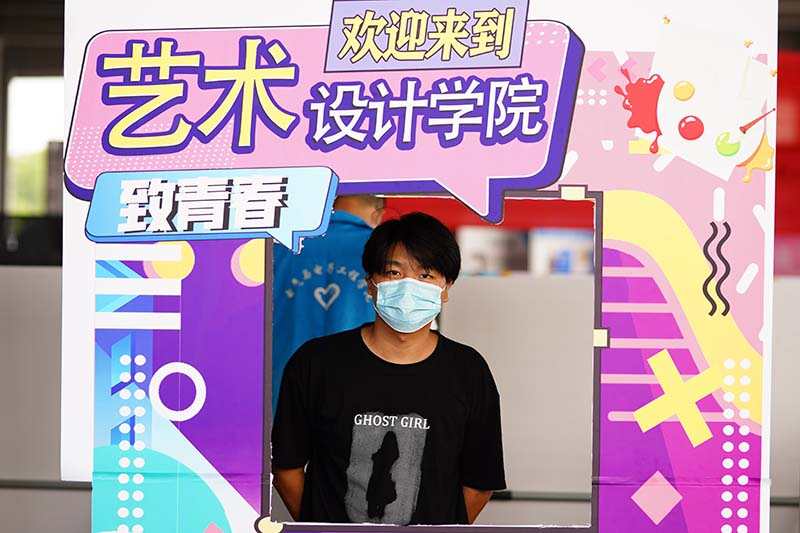 (图为艺术设计学院第一位报到的新生)