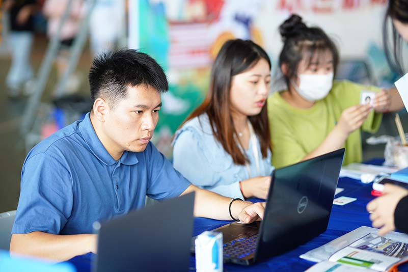 9月3日上午,迎新工作进入火热阶段,志愿者们迎着清晨的微光进入到了各自的岗位,以热情饱满的姿态投入到了迎新工作之中,核酸检测、行李搬运、信息录入等工作有条不紊的进行着。